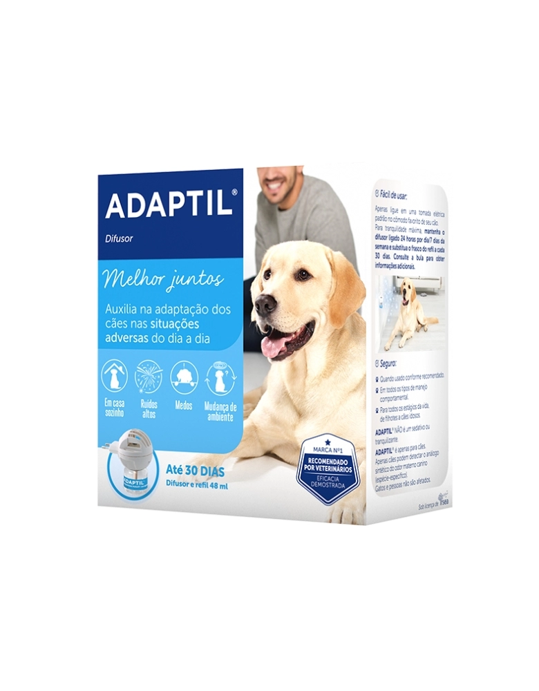 Adaptil é um análogo sintético do odor materno que ajuda os cães a se sentirem seguros e protegidos no ambiente, durante a fase de socialização (filhotes) e em situações adversas como: ansiedade por separação, chegada de novos membros na família (novo animal ou bebê), transporte, ambientes desconhecidos (clínica veterinária) e outras situações que podem causar desconforto para o animal, como tempestades, ruídos altos (fogos de artifícios, festas, eventos), adoção ou estadia em canis/hotéis.