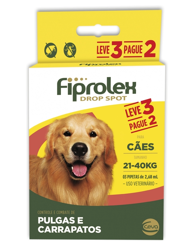 Combo leve 3 pague 2 Antipulgas e Carrapatos Ceva Fiprolex para Cães de 21 a 40 Kg 2,68 ml