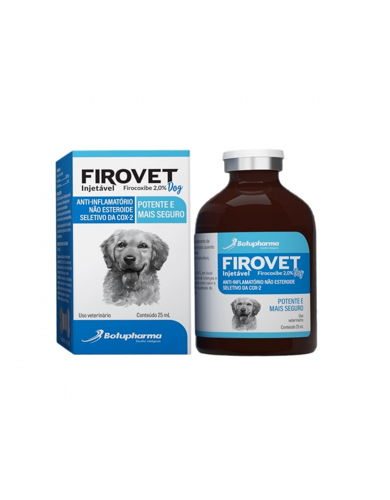 Firovet Injetável é indicado para cães no tratamento de inflamações e para o alívio de dor pós-traumática e pós-cirúrgica, quando há acometimento de tecidos moles ou musculoesqueléticos.
