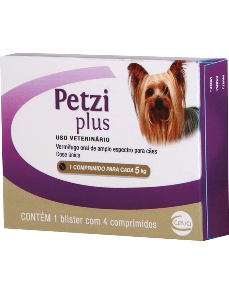 Vermífugo Ceva Petzi Plus para Cães 5 Kg 4 Comprimidos