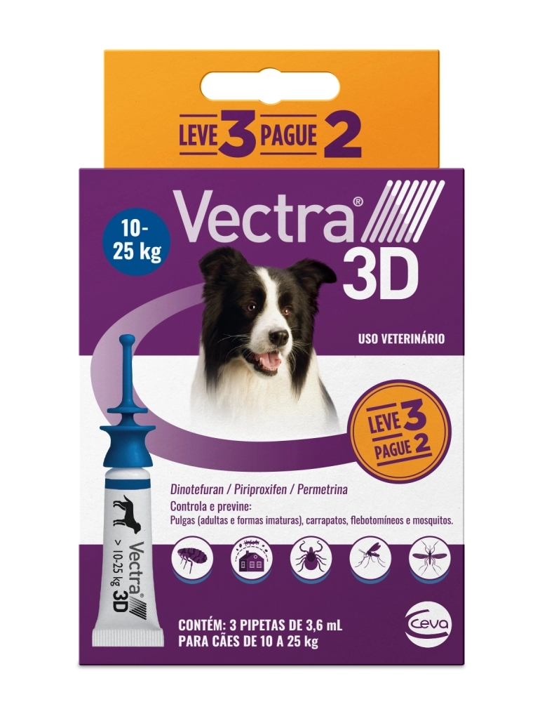 Combo Leve 3 Pague 2 Antipulgas, Carrapatos e Repelente Ceva Vectra 3D para Cães de 10 a 25 Kg 3,6 ml