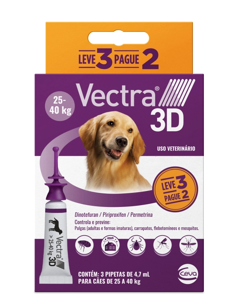 Combo Leve 3 Pague 2 Antipulgas, Carrapatos e Repelente Ceva Vectra 3D para Cães de 25 a 40 Kg 4,7 ml