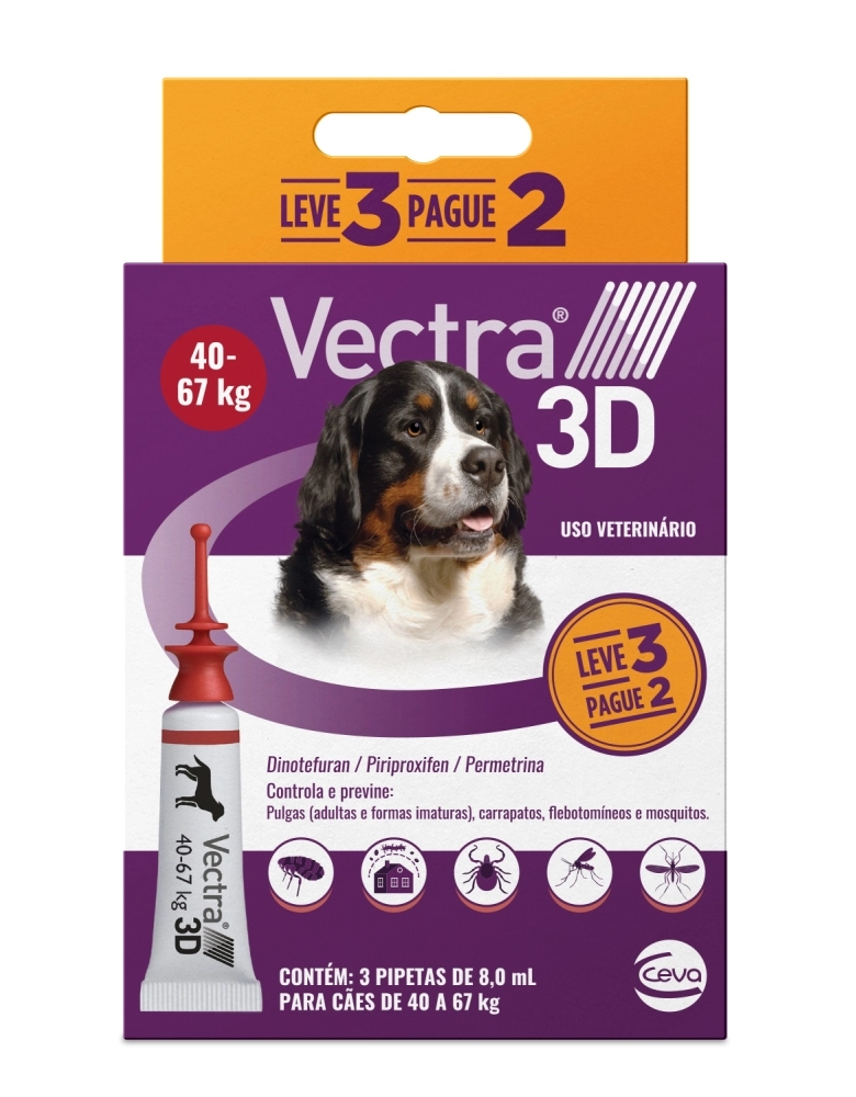 Combo Leve 3 Pague 2 Antipulgas, Carrapatos e Repelente Ceva Vectra 3D para Cães de 40 a 67 Kg 8 ml