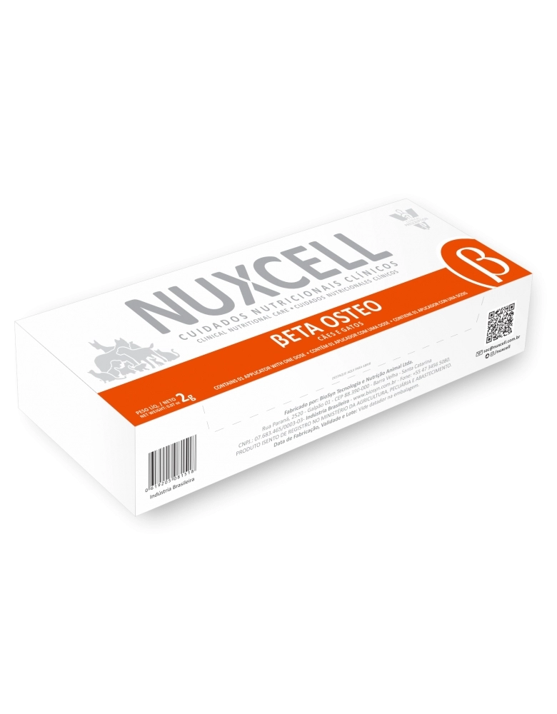NUXCELL ßeta Osteo é o suplemento alimentar com formulação elaborada para ajudar no combate ao processo inflamatório e para reduzir o estresse oxidativo em cães e gatos que enfrentam desafios relacionados à saúde osteoarticular. Tem eficácia para proteger e aumentar a integridade dos ossos e cartilagens.